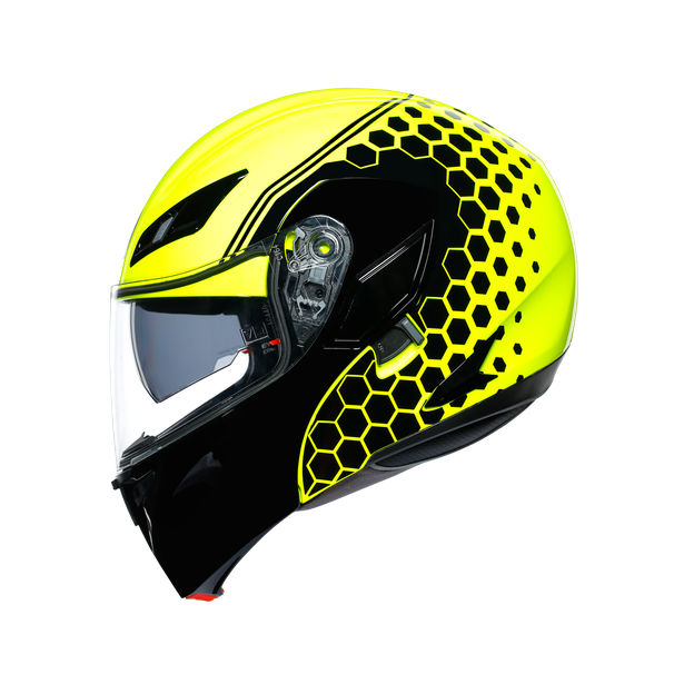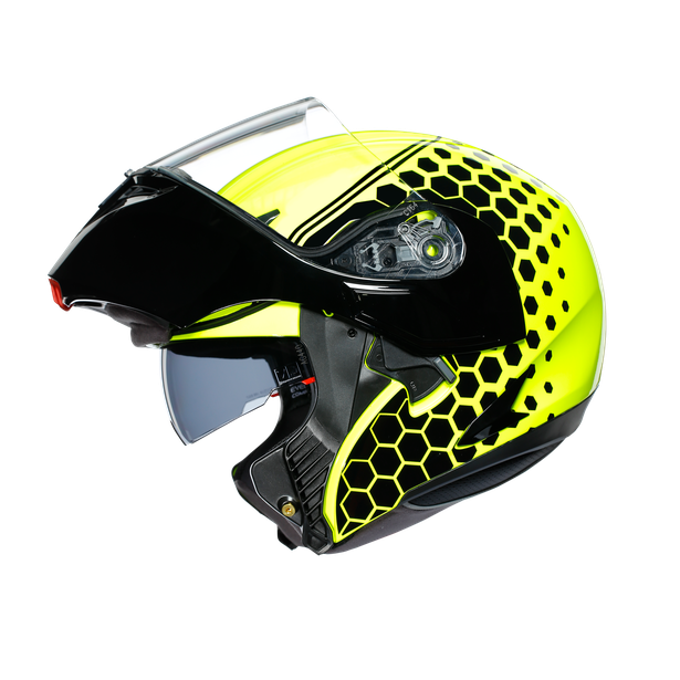 [vc_row][vc_column][vc_column_text]Taking the modular-helmet concept to the next level, the Compact ST has been homologated in both the closed and open positions, and its compact design when in the latter configuration means aerodynamic performance is surprisingly capable. There’s an internal drop-down sun visor, and the new interior is designed for maximum comfort, with high-tech fabrics and carefully positioned stitching. The ultimate in adaptability, this helmet is equally appropriate for city riding and out of town.