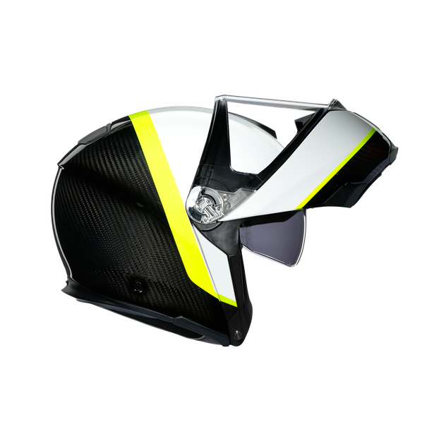 - Chin guard in 100% carbon fiber engineered to guarantee maximum lightweight and balance even in open configuration.